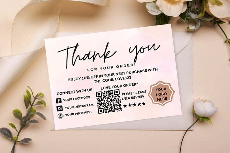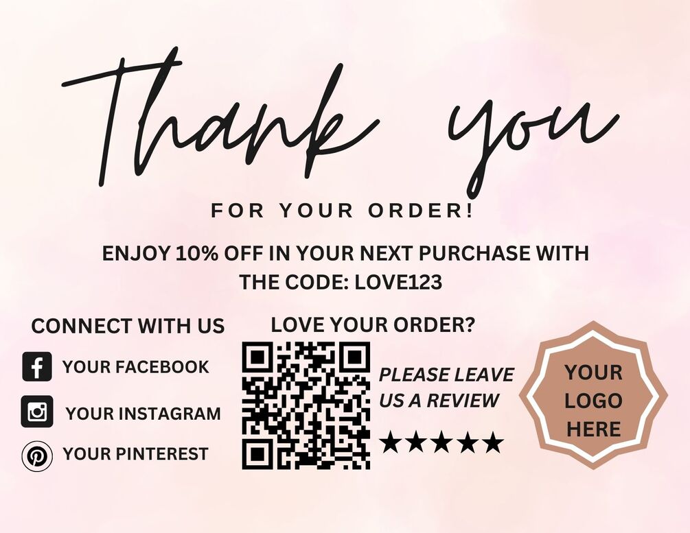 Thank You Card, DIY Marketing Cards Template Design, Thank You For Order Packaging Card, Package Insert Thank You Cards, Small Business Card
